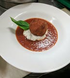 Egg-battered eggplant rolled, ricotta cheese, mozzarella cheese, Parmesan cheese & tomato sauce.